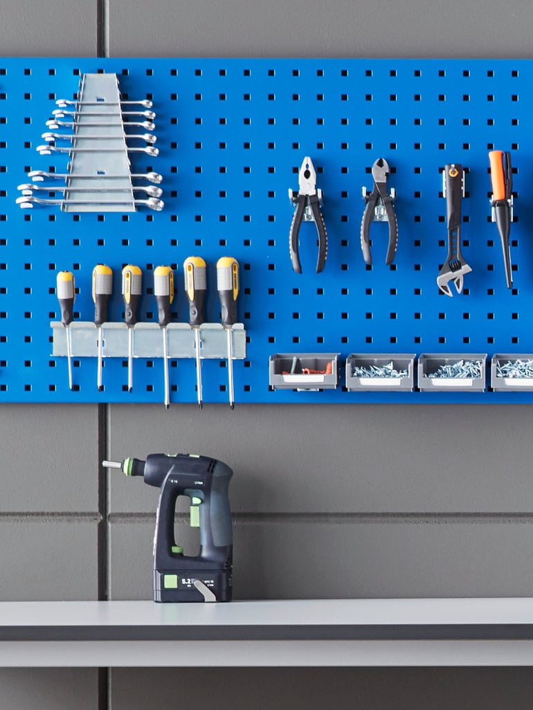 Virš darbastalio paviršiaus sumontuota įrankių sienelė idealiai tinka tiems, kas pageidauja visus savo dažniausiai naudojamus įrankius ir darbo priemones laikyti lengvai pasiekiamoje ir puikiai matomoje vietoje. Galima įsigyti skirtingų išmatavimų įrankių sieneles, jos gali būti montuojamos ir horizontaliai, ir vertikaliai. Norint sukurti maksimaliai patogų sprendimą, vertėtų įsigyti įvairių įrankių bei priedų sukabinimui pritaikytus skirtingus kabliukus bei laikiklius.
