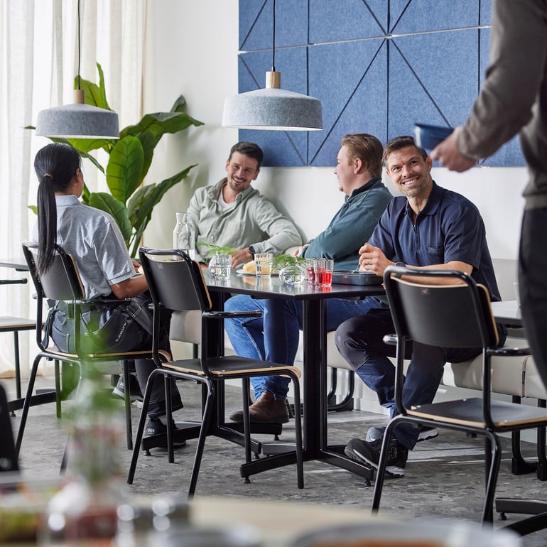 Funkcionalumas – esminis, tačiau ne vienintelis kriterijus. Ši valgykla suteikia šiltą atmosferą šviesiomis medžio detalėmis, ramiomis spalvomis ir subalansuotu apšvietimu. Akustinės plokštės ir pertvaros padeda sumažinti triukšmą ir palaikyti ramybę net ir intensyviausiu metu. Augalai ir šiltas apšvietimas suteikia paskutinį akcentą – harmoniją tarp praktiškumo ir jaukumo.