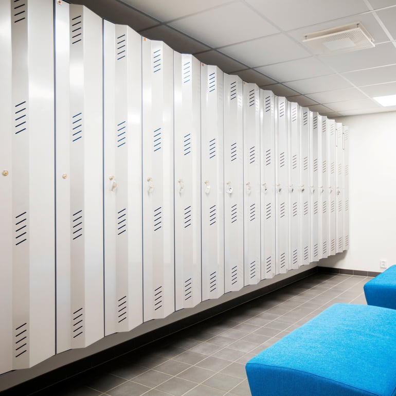 Wohlins projekto metu nepagailėjo investicijų į dizainą ir kokybę. Tai ypač akivaizdu persirengimo kambaryje, kuriame įrengtos spintelės iš AJ Produktai pačių kurtos serijos CREATE ENERGY. Ši serija laimėjo Red Dot Design Award 2015 – vieną didžiausių ir prestižiškiausių dizaino apdovanojimų pasaulyje. Metalinės spintelės gražiai dera su ilgais, minkštais suolais.
