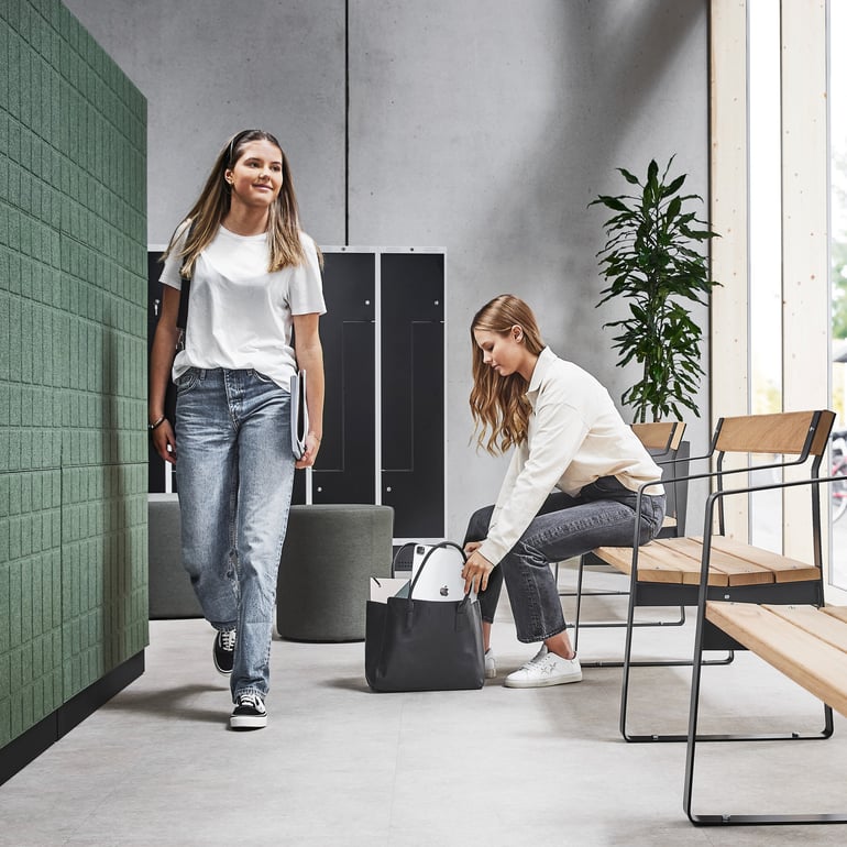 Kai kurios mokyklos turi erdvius įėjimus, rūbines ir bendras patalpas, todėl nesunku priskirti konkrečias funkcijas atskiroms zonoms. Kitose mokyklose erdvės mažesnės, todėl vadovybei tenka elgtis išradingai ir protingai paskirstyti turimą plotą. Vienas iš sprendimų – apjungti kelias funkcijas vienoje vietoje, pavyzdžiui, koridoriuose. O potencialas tikrai didelis: be pagrindinės – judėjimo – funkcijos, koridorius gali būti puiki vieta grupiniams darbams, poilsiui per pertraukas ar mokymuisi laisvų pamokų metu.