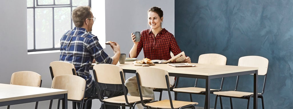 Visiškai nesvarbu kokio dydžio yra socialinė erdvė, svarbiausia, kad joje būtų skirtingos sėdimos vietos. Daugelis darbuotojų, kurie dirba sėdėdami, pertraukėliu metu mėgsta stovėti, todėl tarpusavyje derinant aukštus ir žemus valgomojo stalus galima sukurti daugeliui tinkantį variantą. Stenkitės sukurti kuo universalesnę erdvę. Baldai su ratukais suteikia galimybę dažnai keisti baldų pozicionavimą. Sėdimi baldai gali būti greitai sustumti vienas šalia kito, taip sukuriant jaukesnę vietą bendravimui.